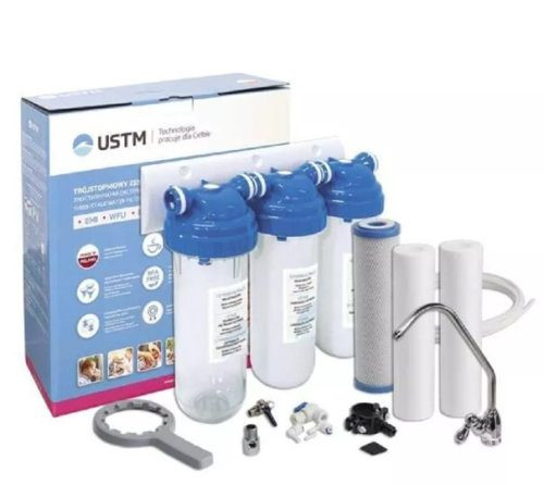 Tartalma: 1 db háromlépcsős szűrőház rögzítéssel 1 db 1/4" golyóscsap 1 db 1/2" bekötő idom 1 db szűrőház kulcs 1 db pultba szerelhető csaptelep 1 db PS20 20 mikronos pp szűrő 1 db BL10 aktívszén szűrő 1 db PS5 5 mikronos PP szűrő 1 db vízcső a szereléshez