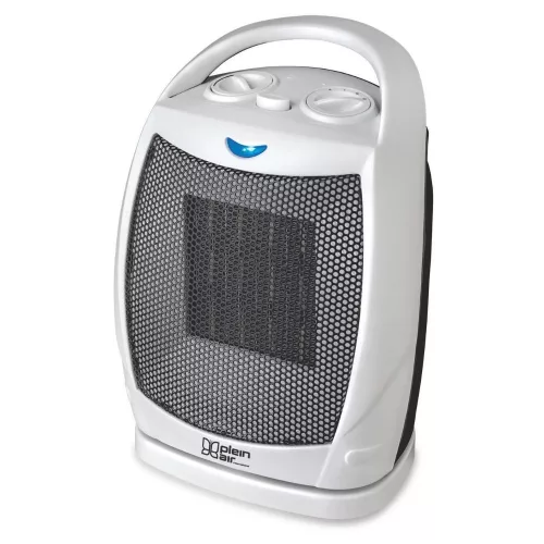 Kerámia PTC ellenállással ellátott ventilátoros fűtőberendezés 2 teljesítményszinttel (1000/1500 W), automatikus oszcillációval, állítható szobatermosztáttal, túlmelegedés elleni biztonsági termosztáttal. Nyári szellőztető funkcióval. Borulásgátlóval, bekapcsolásjelző lámpával. Hordozófogantyúval. 20 m²-es lefedettségi terület.