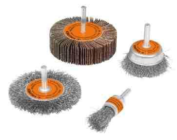 Maximális fordulat:Laminált csiszoló: 8000 fordulat/percDrótkefék: 4500 fordulat/perc A csomag tartalmaz: - 1 laminált csiszoló Ø 3 "(76,2 mm)- 1 db Ø 3 "kör alakú drótkefe (76,2 mm) és vastagsága 5/16" (7,9 mm)- 1 Ø 2 "harang alakú drótkefe (50,8 mm) és vastagság 19/32" (15 mm)- 1 db mini drótkefe Ø 3/4 "(19mm)